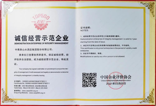 本次获评“诚信经营示范企业”,是继2019年4月中企评授予中青旅山水酒店集团“中国企业信用评价AAA级信用企业”称号以来,对中青旅山水酒店集团“诚为先、信为基、人为本、和为贵”企业精神和“至诚至新、高效高质、共创共赢”核心价值观的再次肯定。