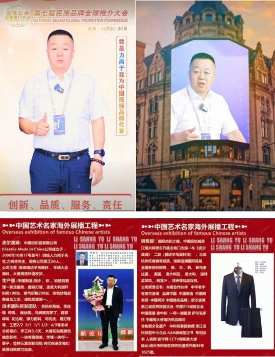 作为中国诚信优秀企业家、全球民族品牌推广大使,力尚于始终以国家纺织业健康发展战略为导向,将精纺面料研发与“中国制造升级”紧密结合。他带领团队打造线上线下精纺面料展示厅,让更多客户直观感受高品质面料的魅力,也让“皮尔波澜精纺”成为行业内响当当的标签。